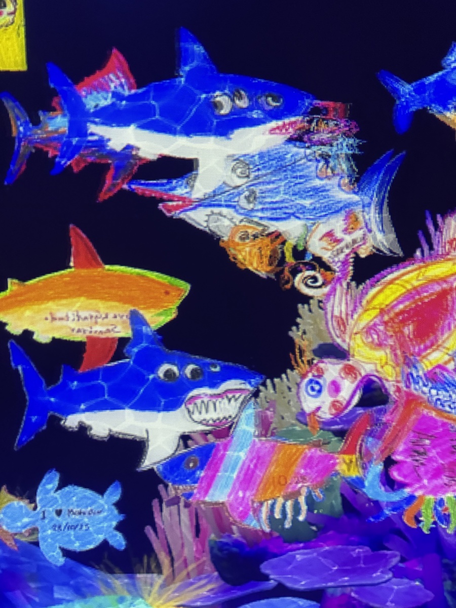 壁や床だけでなく、空間全体が光と音で彩られていて、別世界のようでした。