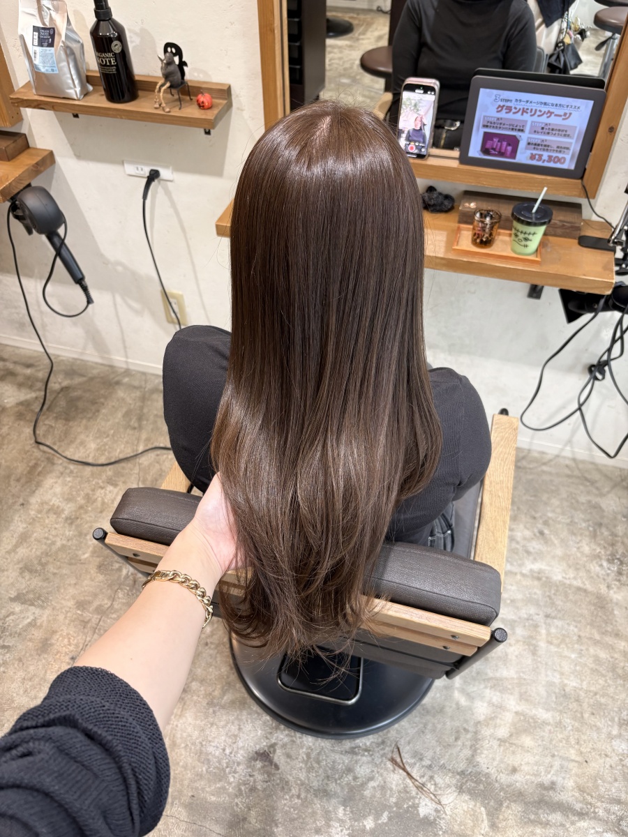 服のトーンが落ち着く季節こそ、髪にほんのり透明感を足してあげるとバランスが取れます。