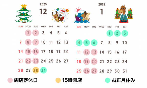 新年2026年は両店共に 1月7日(水) からの営業となります!