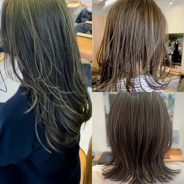 ハイライトを活かしたデザインカラーなら、伸びても目立ちにくく、透明感のある仕上がりに。