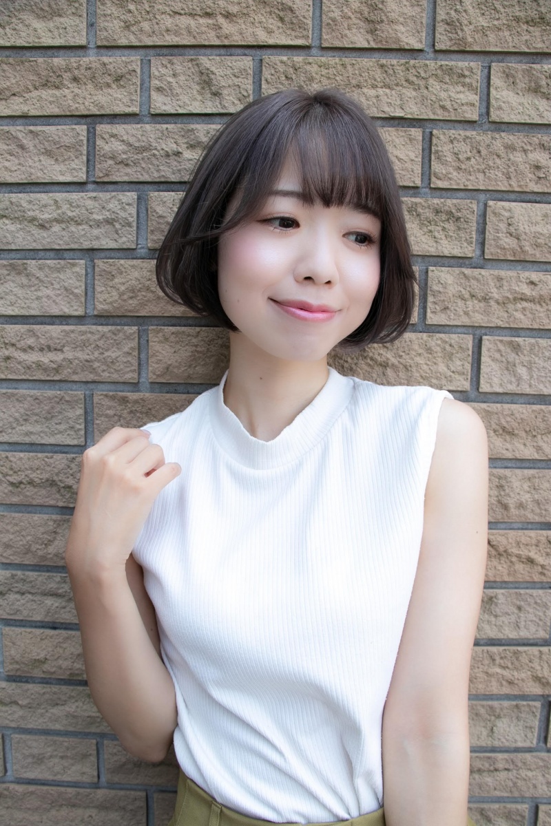 襟元をスッキリしたミニボブショートはおさまりも良くお手入れもカンタンで秋服にも合わせやすいデザインでオススメです!